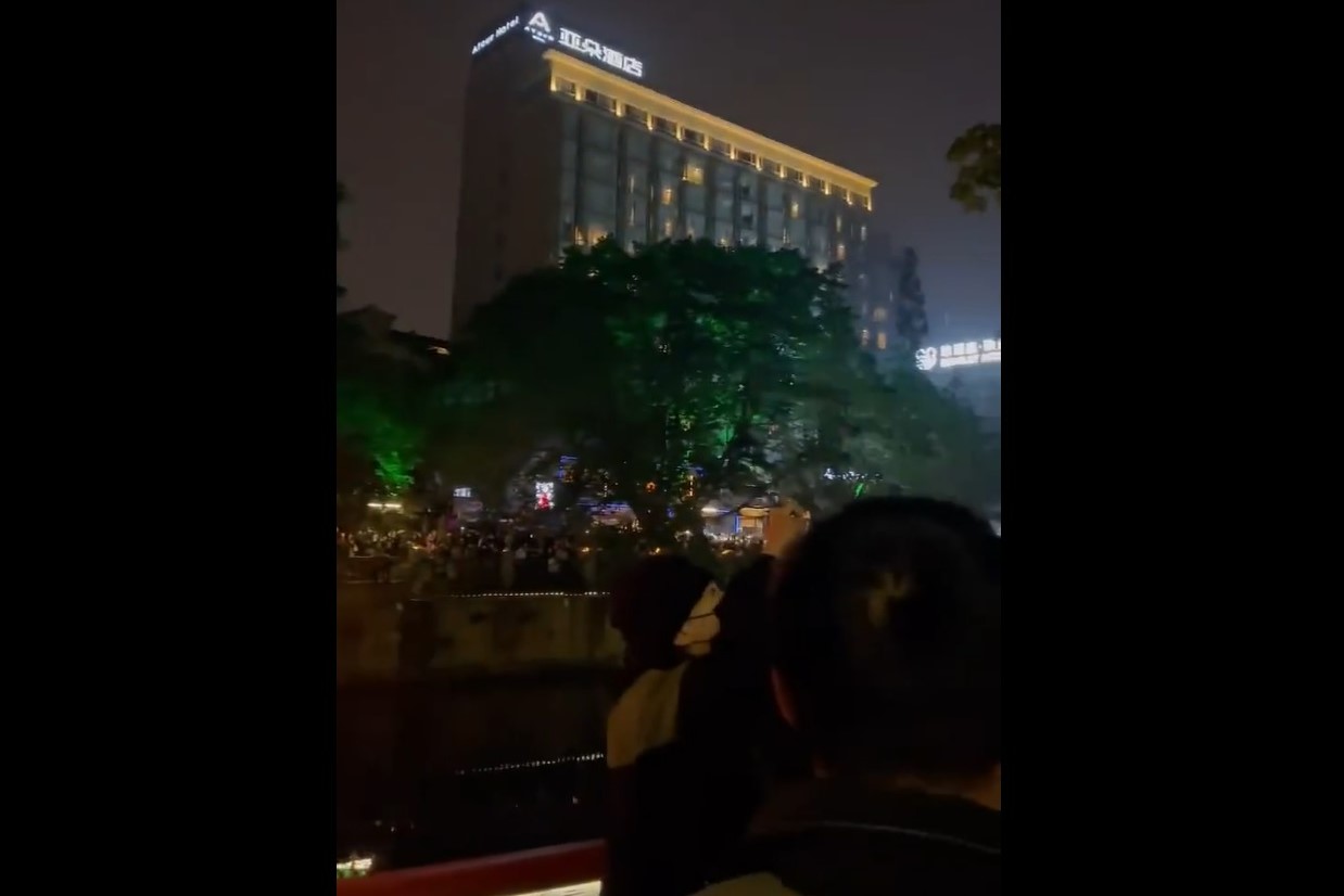 近千位民眾27日晚間湧向北京亮馬河畔,群集馬路高舉白紙訴求言論自由,更喊出「不要獨裁、到站下台」等口號,為六四後最大規模。(圖/翻攝自推特@Wanli_Xiong)