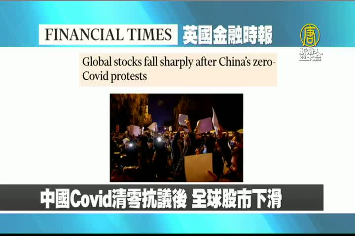 【新唐人亞太台 2022 年 11 月 29 日訊】接著是英國金融時報的報導:中國抗議政府Covid-19政策,增加世界第二大經濟體前景不確定性後,全球股市和油價週一下跌。