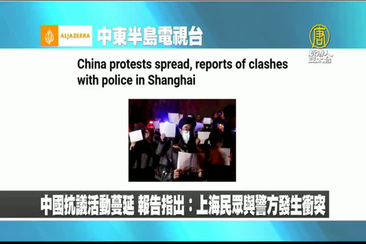 【新唐人亞太台 2022 年 11 月 29 日訊】來看到中東半島電視台報導:中國抗議活動蔓延,報告指出:上海民眾與警方發生衝突。