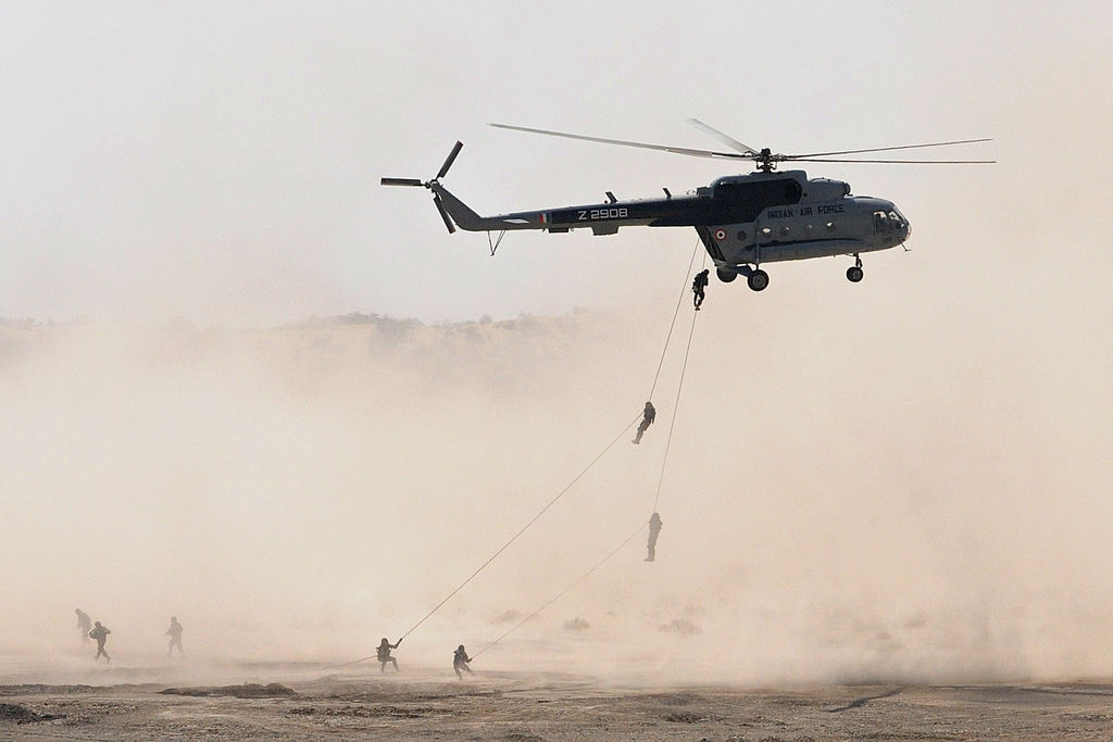 美聯社報導,在演習進行中,印軍自直升機垂降地面,驅趕出室內的持槍歹徒,以展示徒手戰鬥技巧。其他演練出動了嗅探犬和無人拆彈車,並放出定向風箏以摧毀敵軍小型無人機。