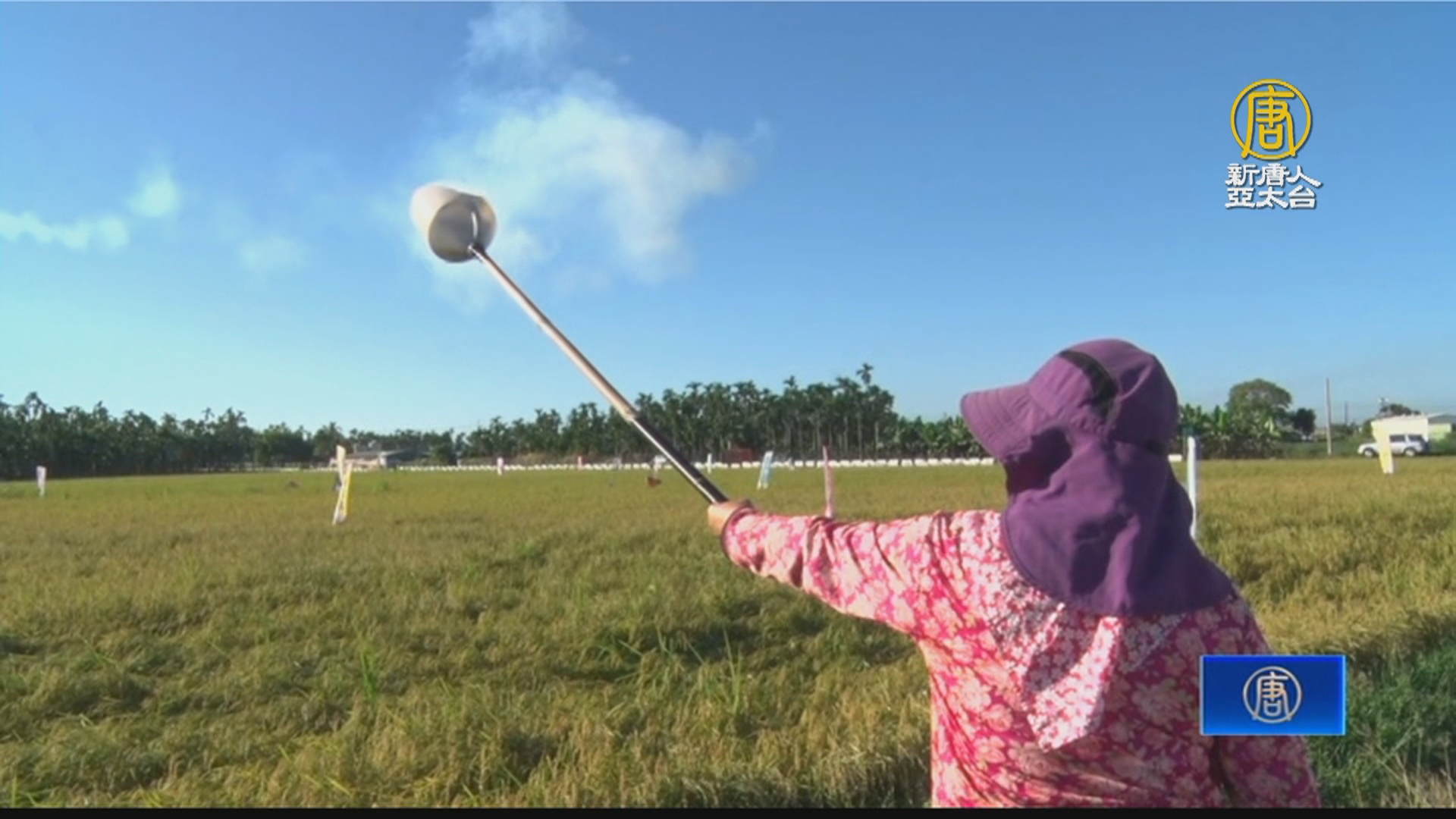 【新唐人亞太台 2022 年 11 月 30 日訊】歡迎回來。屏東潮州、新埤和打鐵一帶,目前二期稻作已進入結穗期,許多麻雀卻趁機飛來搶食稻穀,讓農民傷透腦筋;為了怕影響稻作收成,有農民特別製作「沖天炮」趕鳥器,來驅趕小鳥,希望能降低鳥害損失。
