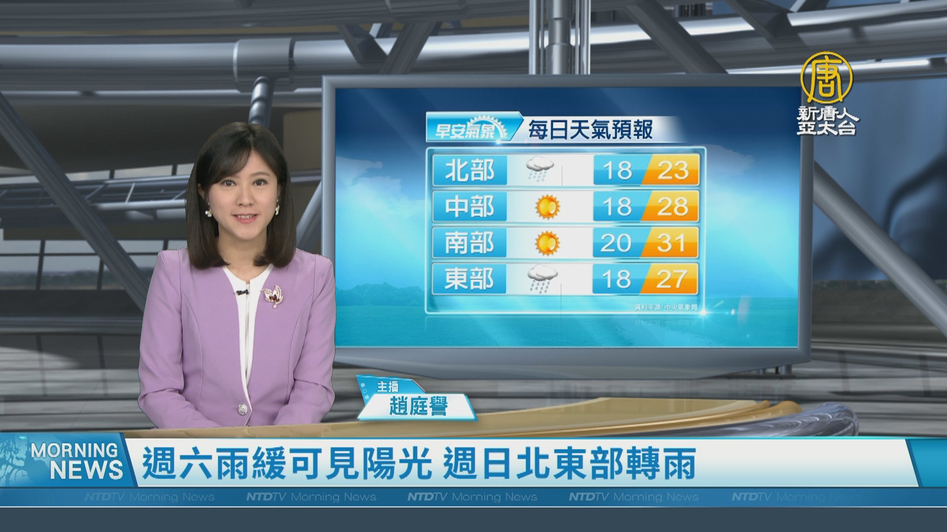 【新唐人亞太台 2022 年 12 月 02 日訊】歡迎您收看12月2日的早安新唐人,我是趙庭譽,先來帶您關心天氣。受東北季風影響,今天台灣北部、東北部及東部天氣仍偏涼,明天氣溫顯著回升,北部、東半部高溫可達26到28度,中南部28到30度。不過,星期天開始,會有兩波冷空氣接力南下,北部、東部將再轉有雨天氣。帶您一起來看到國際媒體重要訊息。