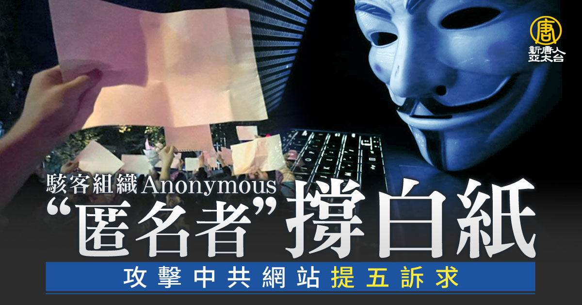 駭客組織「匿名者」撐白紙 攻擊中共網站提五訴求