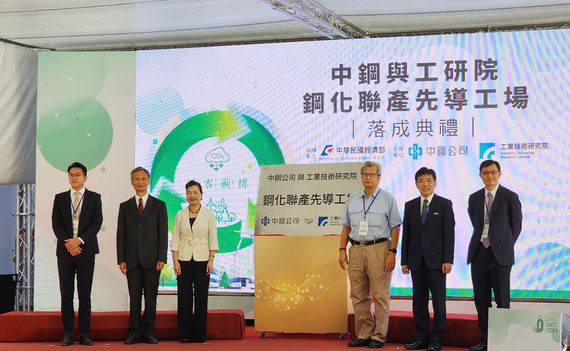 台積電美亞利桑那州廠將辦首批機台設備到廠典禮,被關切技術外流風險。經長王美花(圖左3)回應台積電對保護智財權跟營業秘密做得好,絕無技術外移問題。 圖為經長王美花(圖左3)全台出席首座鋼化聯產先導工場揭牌儀式照。(圖/中央社)