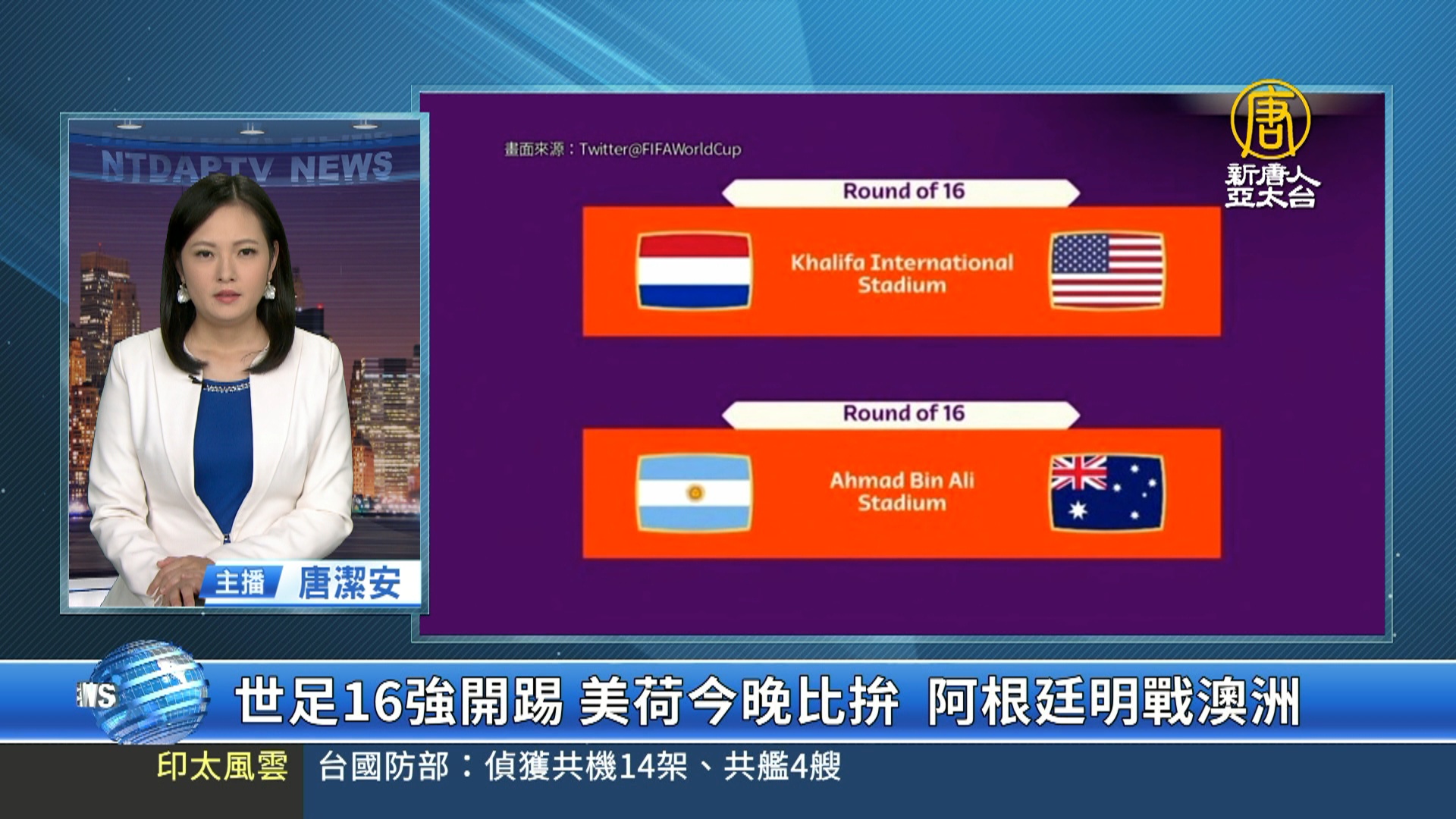 【新唐人亞太台 2022 年 12 月 03 日訊】歡迎回來,卡達世足賽的16強淘汰賽,今晚開踢,將由荷蘭對上美國,而以過去兩隊5次國際賽交手紀錄來看,荷蘭取得3勝、1和、1敗的絕對優勢。另外半夜三點,還有暌違16年再度闖入淘汰賽的澳洲隊,將碰上由梅西領軍的阿根廷,翻開兩隊過去國際賽3戰對戰紀錄,阿根廷取得2勝1和。外界普遍看好阿根廷能順利勝出。