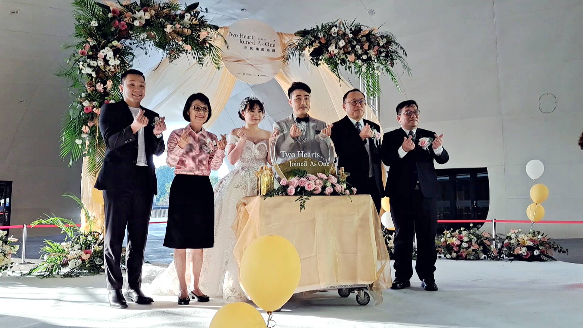 這場集體婚禮也創下首例,由打鼓岩元亨寺贊助設置搭設VR虛擬實境攝影棚。