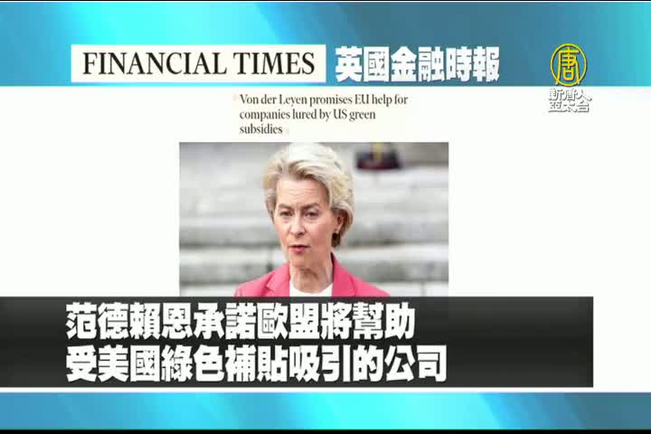 【新唐人亞太台 2022 年 12 月 05 日訊】接著是英國金融時報的報導:歐盟執委會主席范德賴恩承諾,歐盟將幫助受美國綠色補貼吸引的公司。