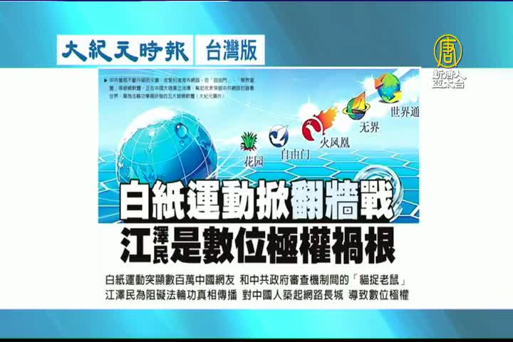 【新唐人亞太台 2022 年 12 月 05 日訊】接著看到大紀元時報台灣版報導:白紙運動掀翻牆戰,江澤民是數位極權禍根。