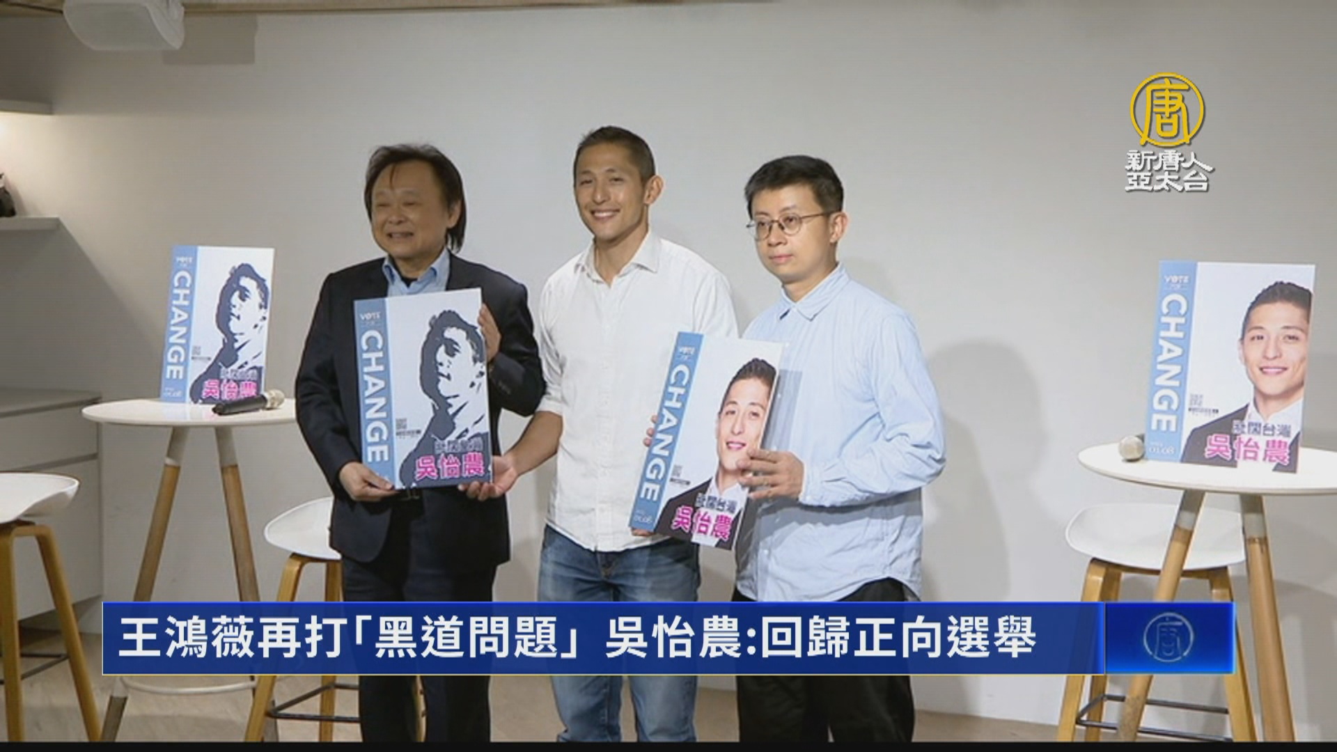 【新唐人亞太台 2022 年 12 月 06 日訊】北市立委補選備受關注,民進黨候選人吳怡農今天(12月6日)公布競選主視覺和政策主軸,主打國家安全、提升台灣競爭力及國際化三方向,議員王世堅和邱威傑現身站台,只是對手王鴻薇持續緊追民進黨黑道黨員問題,吳怡農重申希望回歸正向選舉。他也肯定黃承國主動要求啟動調查,希望國民黨也用同樣標準看待自己。