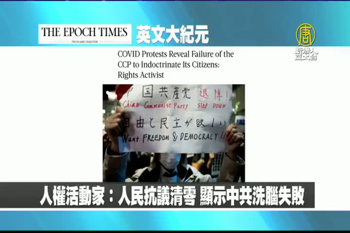【新唐人亞太台 2022 年 12 月 07 日訊】首先來看到美國大紀元英文版報導:人權活動家表示,中國人民抗議清零政策,顯示中共洗腦人民失敗。