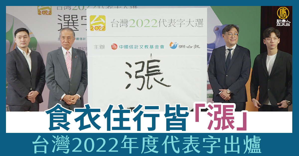 【新唐人亞太台 2022 年 12 月 07 日訊】歲末年終,台灣今年的年度代表字出爐,是萬物齊漲的「漲」。主辦單位表示,俄烏戰爭加上全球能源吃緊、美國貨幣緊縮與通膨壓力等因素,讓台灣從雞蛋價格、小吃到電費都在漲價。台灣游泳選手王冠閎則是正面思考,希望自己的成績可以一路上漲。