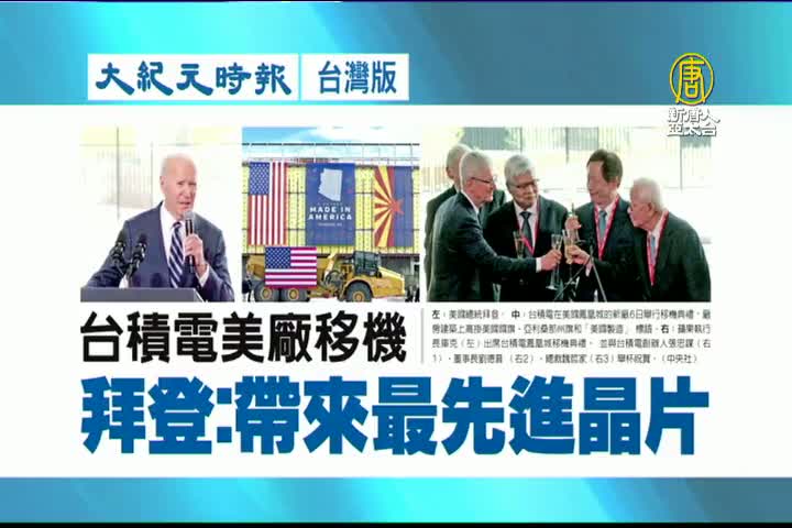 【新唐人亞太台 2022 年 12 月 08 日訊】接著看到大紀元時報台灣版報導:台積電在亞利桑那州舉行移機典禮,美國總統拜登出席並稱讚台積電的晶片為「地表最先進」。