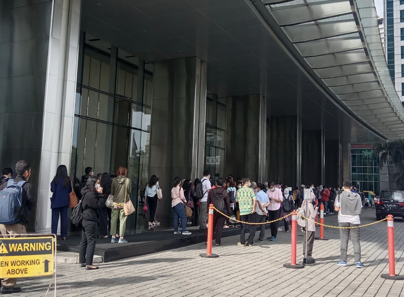 印尼西爪哇8日上午發生規模5.8地震,雅加達南部一間辦公大樓在地震後要求所有員工離開辦公室。(圖/民眾提供)