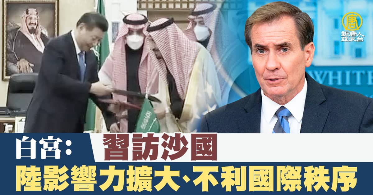 在習近平抵達沙烏地阿拉伯前,白宮國家安全會議(NSC)發言人柯比(John Kirby)表示,中共試圖在全球範圍內擴大影響力,中東地區是其中之一,並指出他們的方式「不利於」國際秩序。