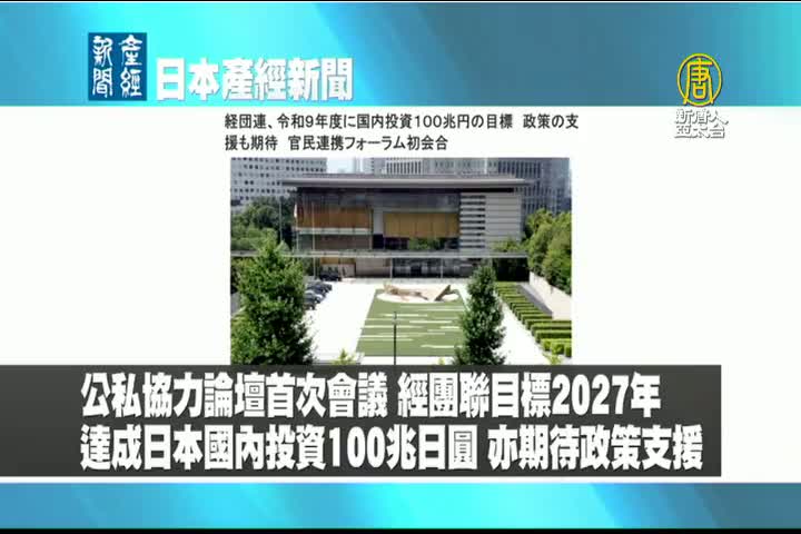 【新唐人亞太台 2022 年 12 月 09 日訊】來看到日本產經新聞報導:日本經團聯目標在2027年達成日本國內投資100兆日圓,也期待政府政策上的支援。