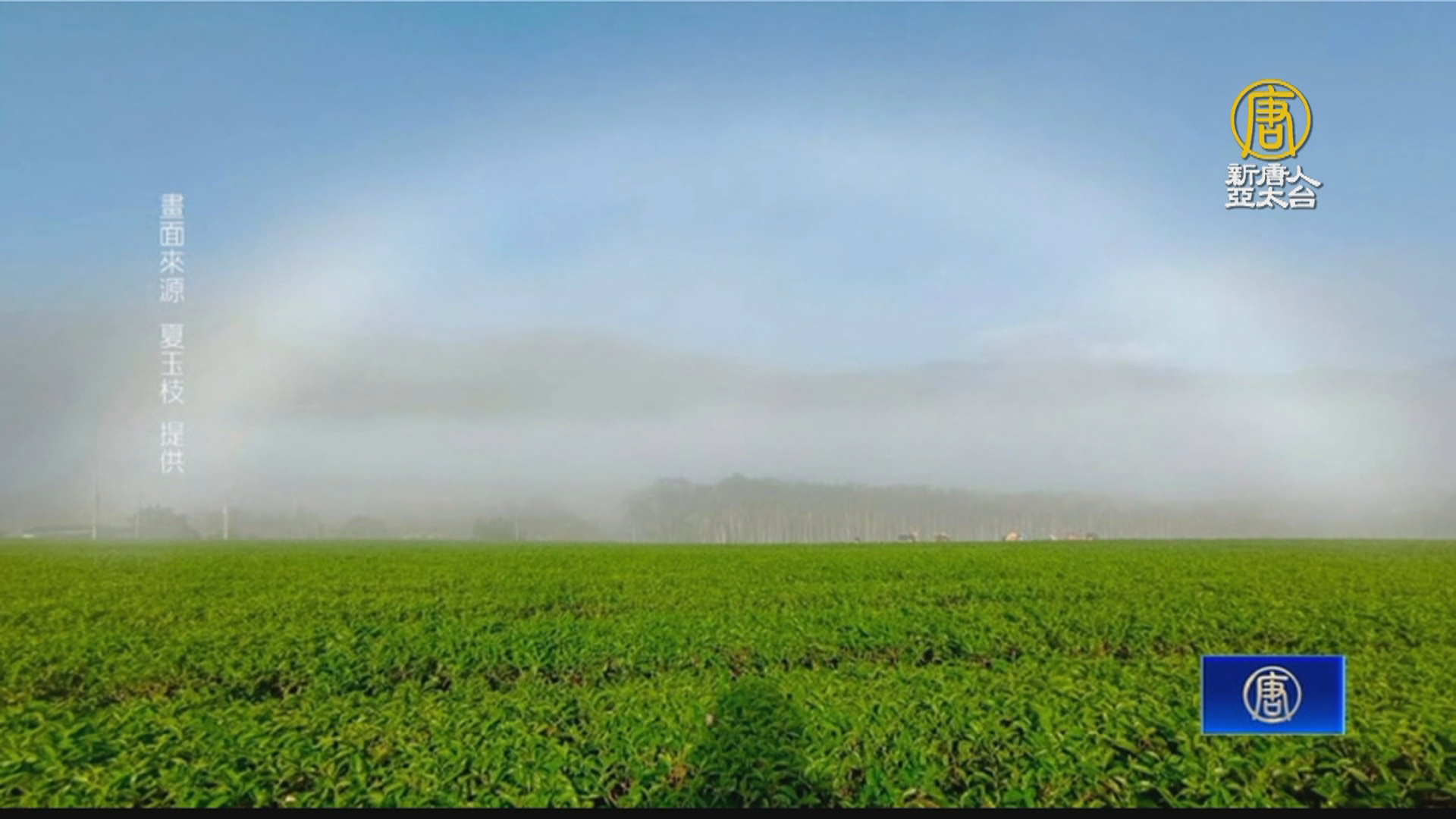 【新唐人亞太台 2022 年 12 月 09 日訊】限定版的自然美景,意外出現在花蓮瑞穗!有民眾早上送報時,經過「舞鶴台地」的一處茶園,發現天空中有一道「白色彩虹」,趕緊記錄下這罕見的自然景像。但彩虹為什麼只有白色,氣象站解釋,因為陽光折射水滴非常小,光譜分散不開,才會只呈現白色。