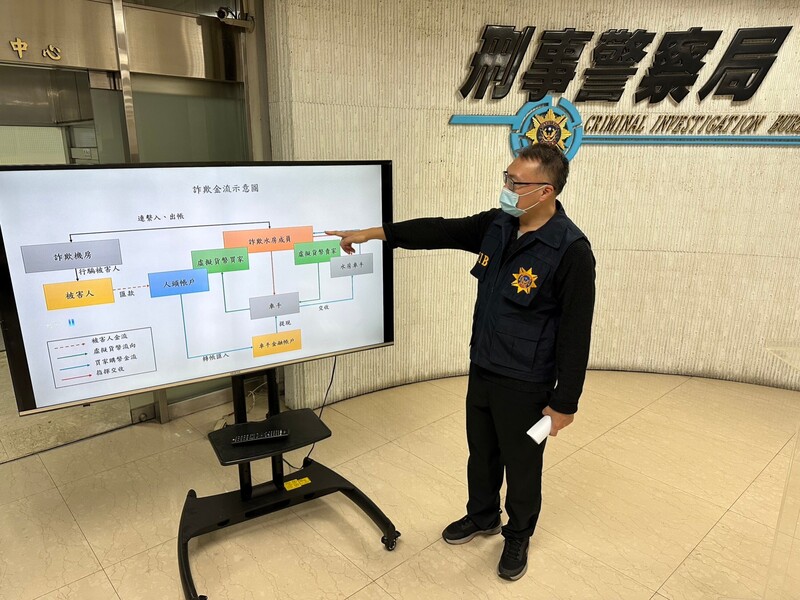 刑事警察局今天召開記者會,副局長黃家琦指出,偵一大隊日前獲報,民眾遇到假投資詐騙,循線追查發現,以陳姓男子為首的水房集團涉替詐騙集團洗錢,組專案小組偵辦。