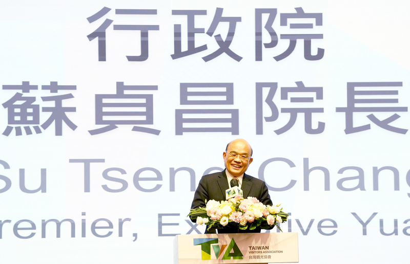 蘇貞昌表示,COVID-19(2019冠狀病毒疾病)疫情前5年,每年來台觀光客破千萬人次,疫情後近3年旅遊業較辛苦,他感謝業者疫情期間配合政府防疫政策。