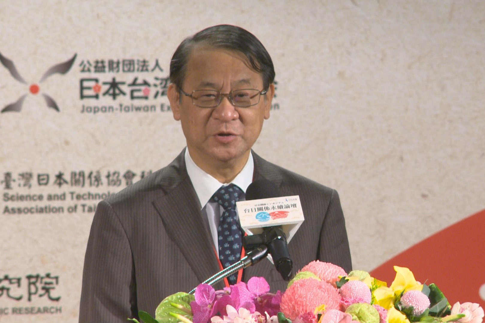 台日關係永續論壇上午在圓山大飯店舉行開幕式,日本台灣交流協會台北事務所代表泉裕泰出席致詞。(圖/新唐人)