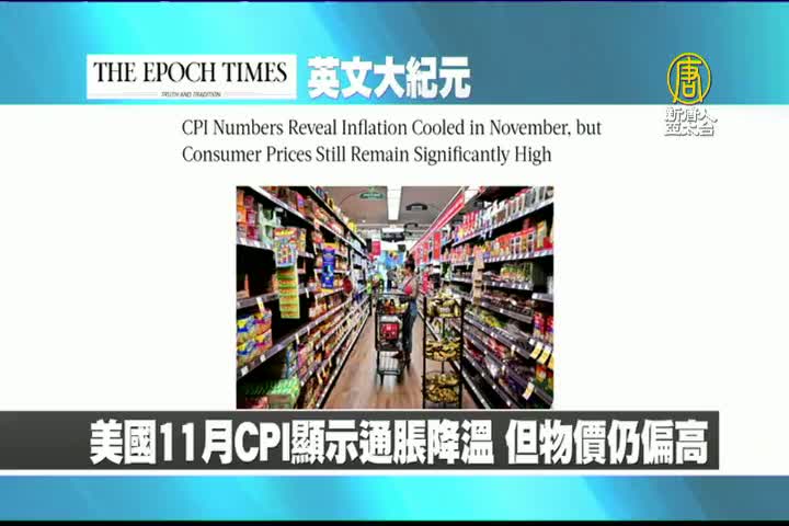 【新唐人亞太台 2022 年 12 月 14 日訊】首先來看到美國大紀元英文版報導:美國11月消費者物價指數顯示通貨膨脹降溫,但物價仍然偏高。