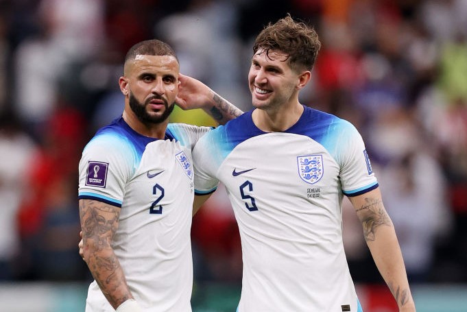 英格蘭在世界盃8強以1比2惜敗法國,球員似不願空手回家,效力曼城雙人檔華克(圖左) (Kyle Walker)與史東斯(圖右) (John Stones)在卡達領養一流浪貓取名戴夫要帶牠回英國。資料照。(圖/GettyImages)