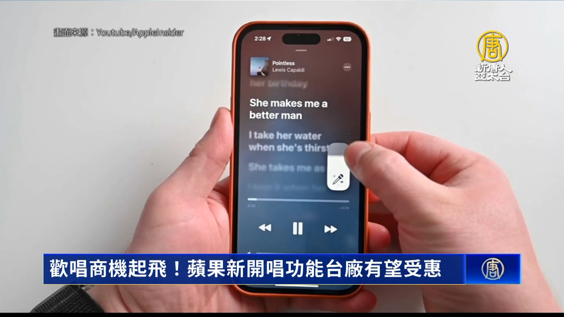 【新唐人亞太台 2022 年 12 月 15 日訊】蘋果釋出軟體更新,一大亮點是首度結合自家 Apple Music 推出開唱功能,外界看好將帶動個人歡唱商機,台廠也有望受惠。