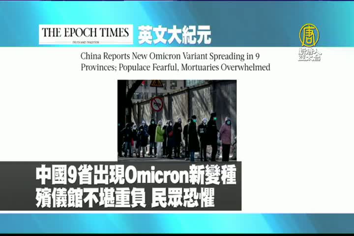 【新唐人亞太台 2022 年 12 月 16 日訊】首先來看到美國大紀元英文版報導:中國9省出現Omicron新變種。新一波染疫浪潮使醫院、殯儀館不堪重負,特別是北京和廣州,民眾恐懼。