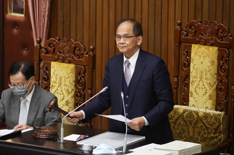 立法院長游錫堃(圖右)16日敲槌宣布三讀通過公務人員個人專戶制退休資遣撫卹法,規定112年7月1日以後初任公務人員的退撫新制,由確定給付制改為確定提撥制。(圖/中央社)