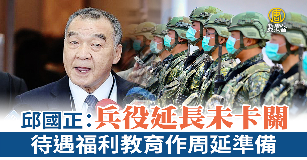 【新唐人亞太台 2022 年 12 月 19 日訊】兵役延長規劃備受外界關注,國防部長邱國正今天表示,牽涉各部會協調且茲事體大,如何將待遇、福利、教育等共同做出很好整合,需花費很大功夫;現正努力作周延準備,沒有卡關問題。