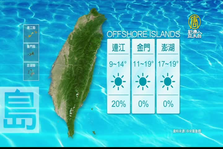 2022-12-19 09:12:44歡迎您收看12月19日的早安新唐人,我是唐潔安,先來帶您關心天氣。寒流來襲,昨天清晨,新北石門出現5.7度低溫,台北市一整天也幾乎在10度以下。今天寒流減弱,白天將逐漸回溫,不過,星期三(21日)開始,又有強烈冷氣團接力報到,乾冷天氣將持續到聖誕節,提醒觀眾朋友特別留意。帶您一起來看到國際媒體重要訊息。