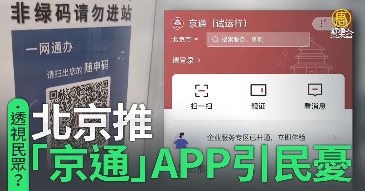 百姓成透明人?北京推「京通」APP 民憂遭嚴控