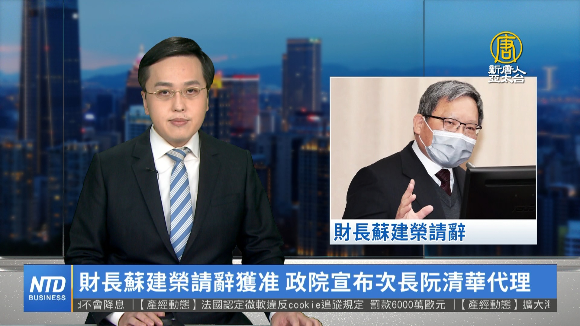 【新唐人亞太台 2022 年 12 月 22 日訊】台灣財政部長蘇建榮這個月25日,借調期滿,確定回到台北大學任教,這周五(23日)是最後一天上班。行政院今天宣布,將由次長阮清華代理。