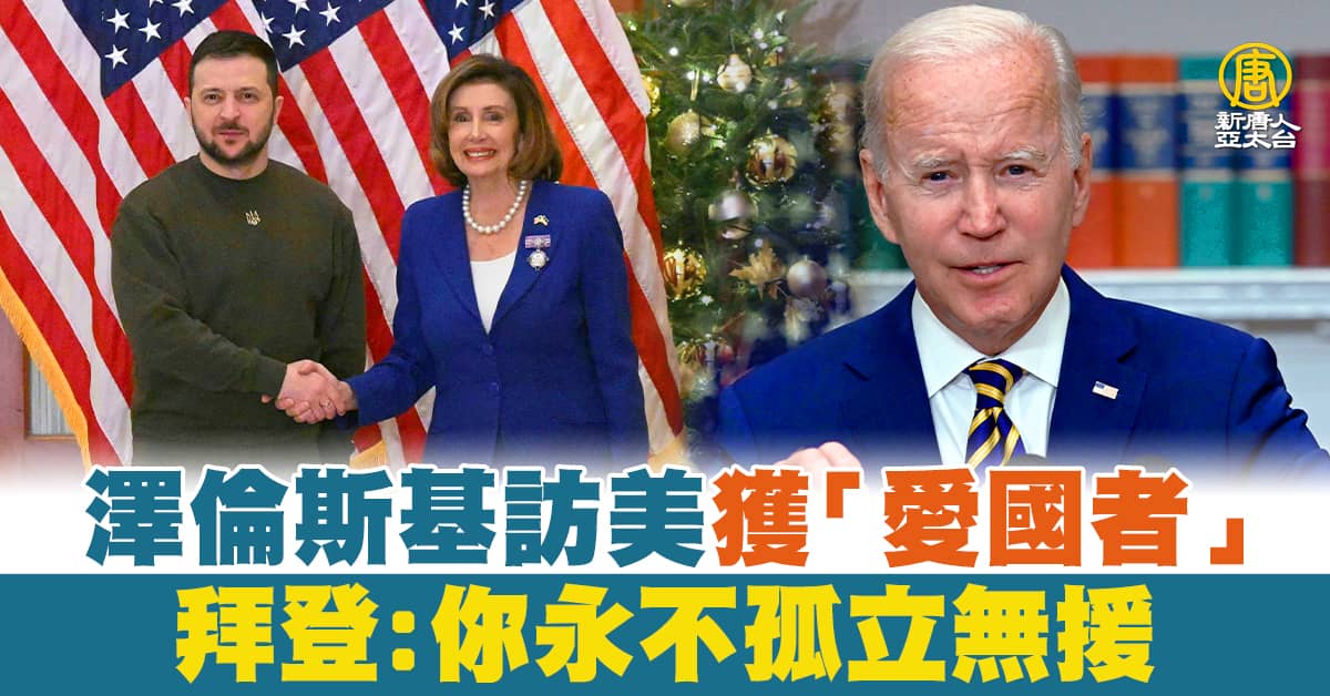 【新唐人亞太台 2022 年 12 月 22 日訊】烏克蘭總統澤倫斯基週三,訪問美國,並在白宮與美國總統拜登舉行2小實會晤,澤倫斯基感謝美國加碼提供近20億美元的軍事援助,包括愛國者飛彈防禦系統,拜登則說,這將是「在烏克蘭上空建立安全領空的非常重要一步」,也向澤倫斯基承諾「你永遠不會孤立無援」。
