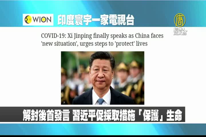 【新唐人亞太台 2022 年 12 月 27 日訊】最後是印度寰宇一家電視台報導:習近平在中國面臨「新形勢」時,首度發言,稱要採取措施,「保護」生命。