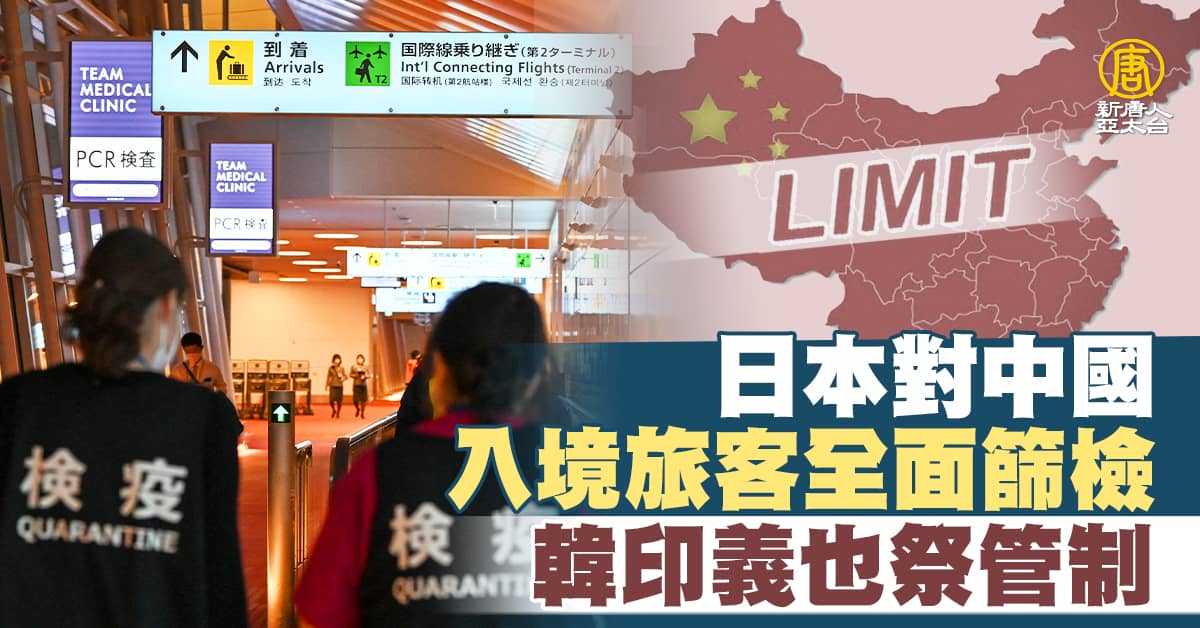 【新唐人亞太台 2022 年 12 月 28 日訊】在中國疫情竄升之際,中共當局宣布放寬邊境,昨天(27日),日本首相岸田宣布,針對中國赴日及7天內去過中國的所有人,加強入境檢測,陽性必須隔離7天,同時還要限制中國航班班次,其他包括南韓、印度、義大利也都宣布加強對中國旅客檢疫。