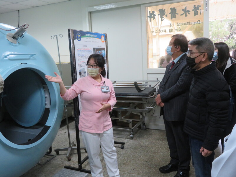 立法院社會福利及衛生環境委員會委員29日前往澎湖考察三總澎湖分院與部立澎湖醫院,聽取簡報並赴放射科、心導管室及潛醫科等醫療裝備參訪。(圖/中央社)