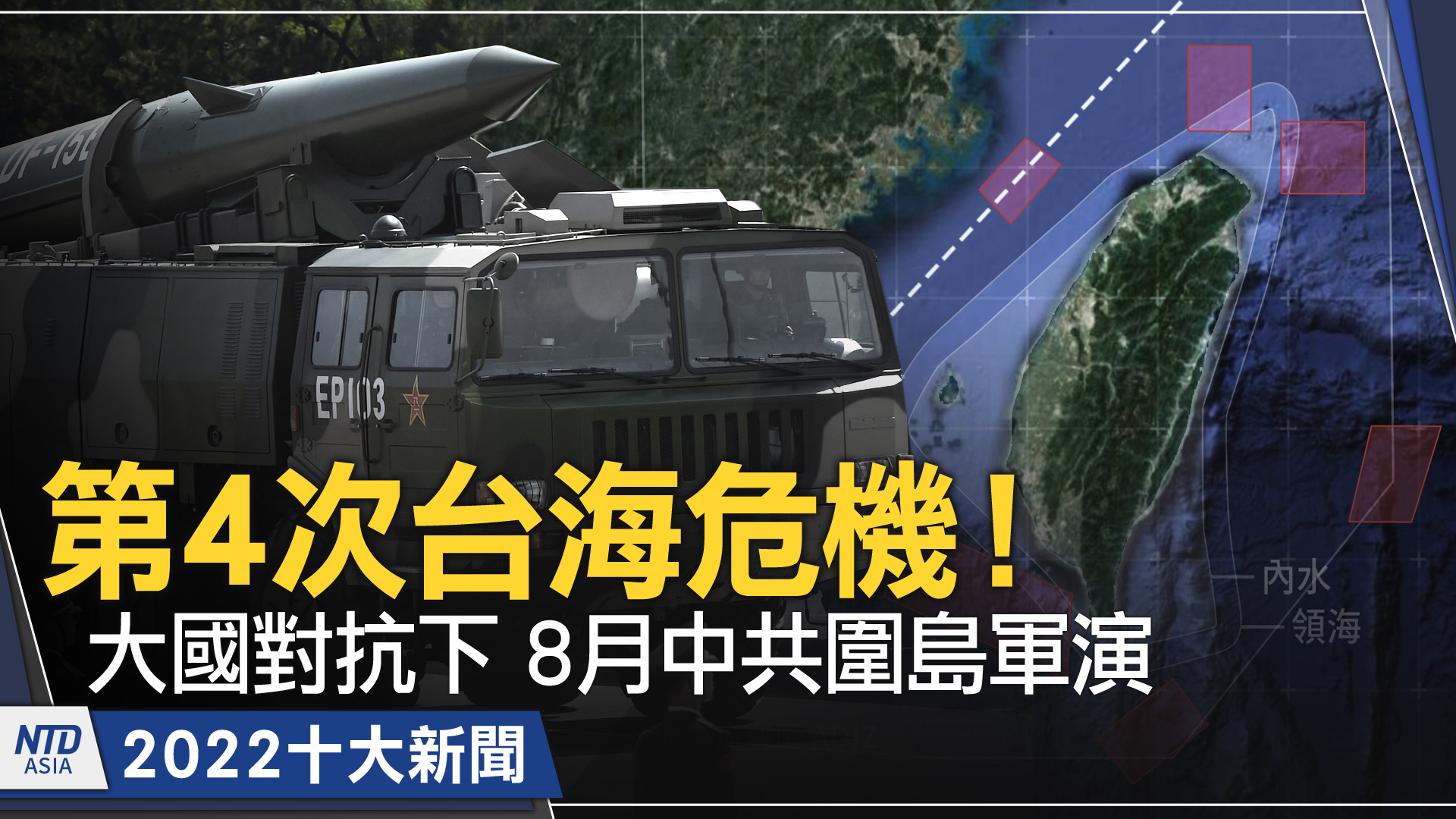 【新唐人亞太台 2022 年 12 月 31 日訊】再來看到,2022十大新聞的第五名:第4次台海危機,8月中共圍島軍演。2022年夏天,美國議長裴洛西大訪台,中共環繞台灣發布大規模軍演,甚至發射飛彈越過台海上空,號稱第四次台海危機。中共大肆炒作所謂外部勢力介入,揚言武力報復,持續派軍機、軍艦擾台。但也因此,抗共成為顯學,促使,國際社會紛紛表達對台灣的支持。
