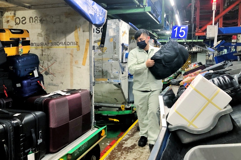 負責貨物裝卸、旅客行李搬運等的長榮航勤員工不滿年終僅1個月,元旦假期集體休假。桃園市勞動局2日表示勞方可由工會提起勞資爭議調解,未加入工會但有相同主張的勞工若逾10人也可提出。(圖/中央社)