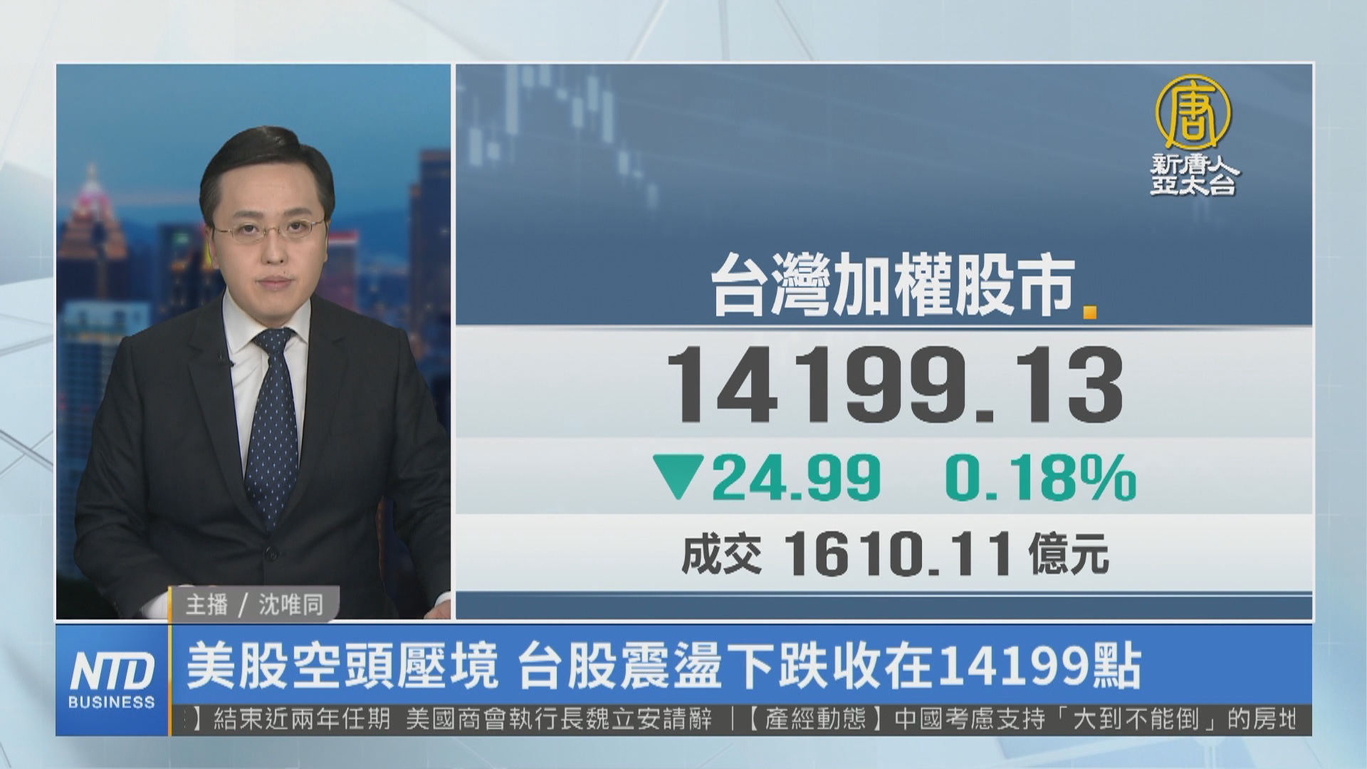 【新唐人亞太台 2023 年 01 月 04 日訊】新聞一開始帶您看到國際股市,IMF警告全球經濟可能趨向衰退,以及市場預期,Fed持續升息,美股2023年第一個交易日,四大指數開高收低,表現弱勢。蘋果(Apple)受砍單消息影響,市值跌破2兆美元,特斯拉(Tesla)也持續遭做空機構看空。台股4日在平盤,上下游走震盪,其中再生能源族群成為多頭指標,不過航運類股,賣壓沉重,台積電、聯發科、鴻海尾盤壓低,加權指數小跌24.99點,收在14199.13點。