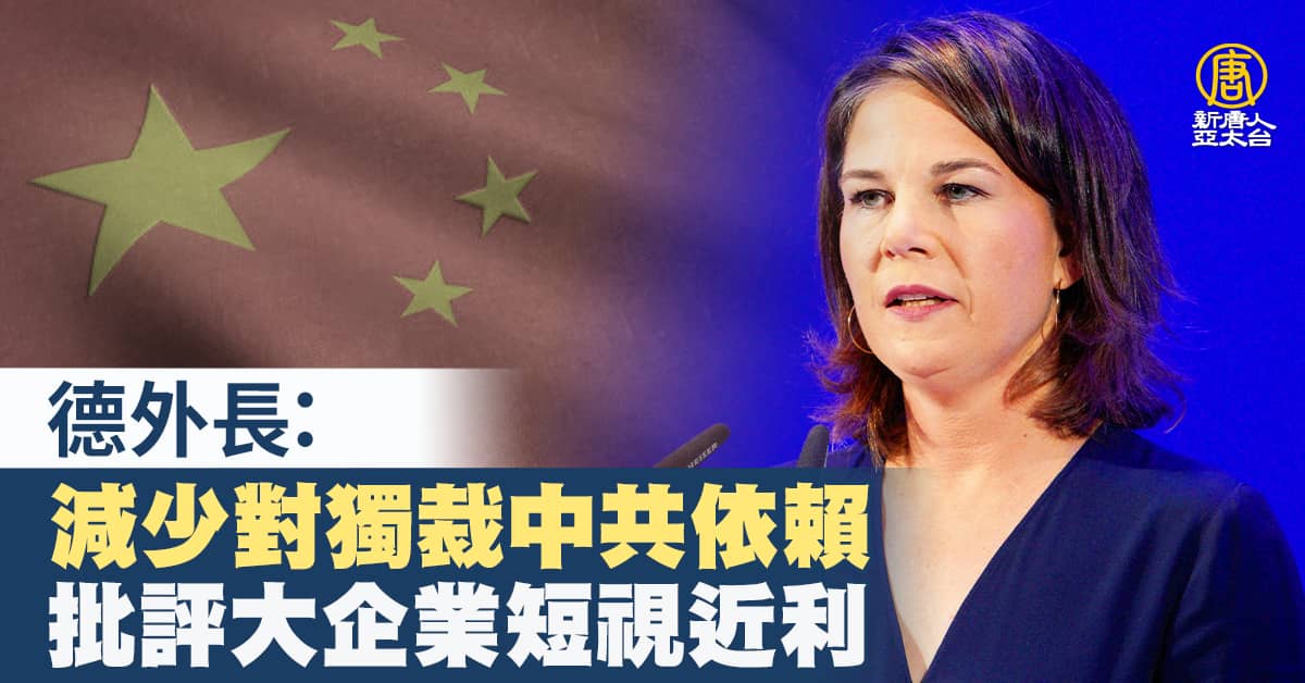 【新唐人亞太台 2023 年 01 月 04 日訊】德國近來對中立場轉趨強硬,即將公布新的中國政策文件,德國外長貝爾伯克批評在中國經營的大企業短視近利,強調分散市場和減少對獨裁國家依賴的急迫性。
