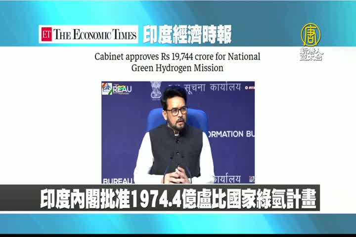 【新唐人亞太台 2023 年 01 月 05 日訊】最後是印度經濟時報報導:印度內閣批准1974.4億盧比的國家綠氫計畫。