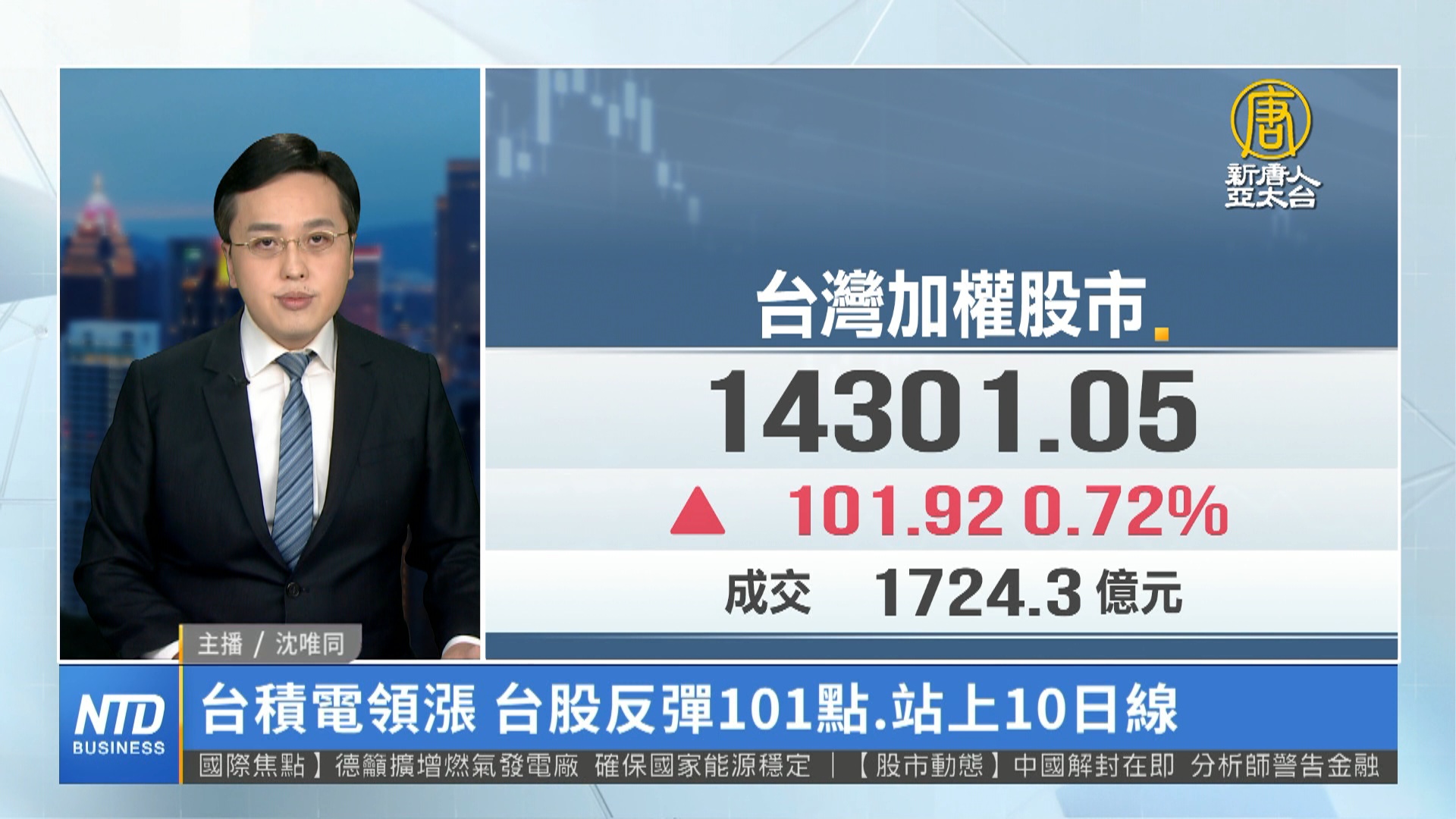 台積電領漲 台股反彈101點.站上10日線