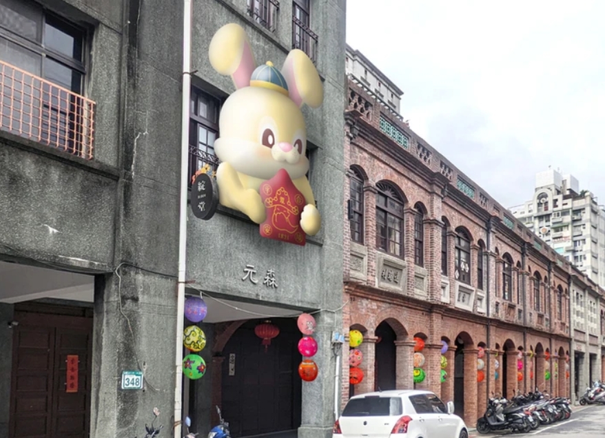 台北迪化年貨大街6日登場,北市商業處指出迪化街將設巨型萌兔氣球裝置,讓民眾感受年節文化。圖為民權迪化街口萌兔。(圖/翻攝自北市商業處網頁)