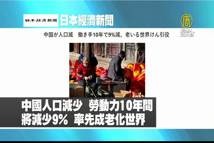 【新唐人亞太台 2023 年 01 月 18 日訊】來看到日本經濟新聞報導:中國人口減少,勞動力10年間將減少9%,率先成為老化世界。