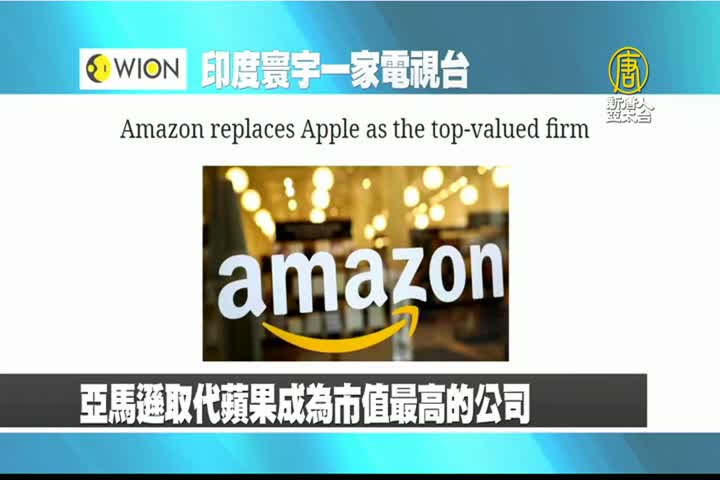 【新唐人亞太台 2023 年 01 月 19 日訊】最後是印度寰宇一家電視台報導:亞馬遜取代蘋果成為市值最高的公司。