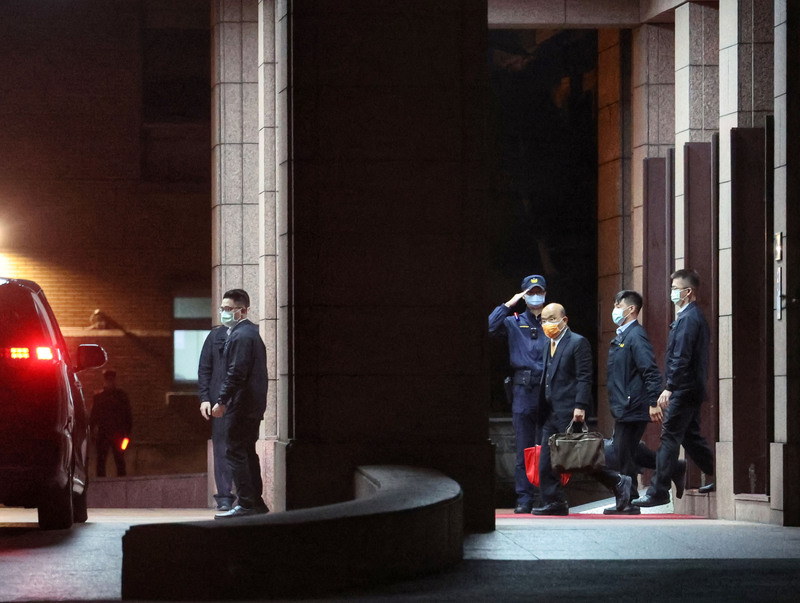 行政院長蘇貞昌(圖右3)19日再向總統請辭。他說去年會接受慰留,是擔憂中央政府總預算案遭退回,因此選擇頂住穩住團隊,如今總預算案已過此刻應開創新局。圖為蘇貞昌從行政院準備乘車離去。(圖/中央社)