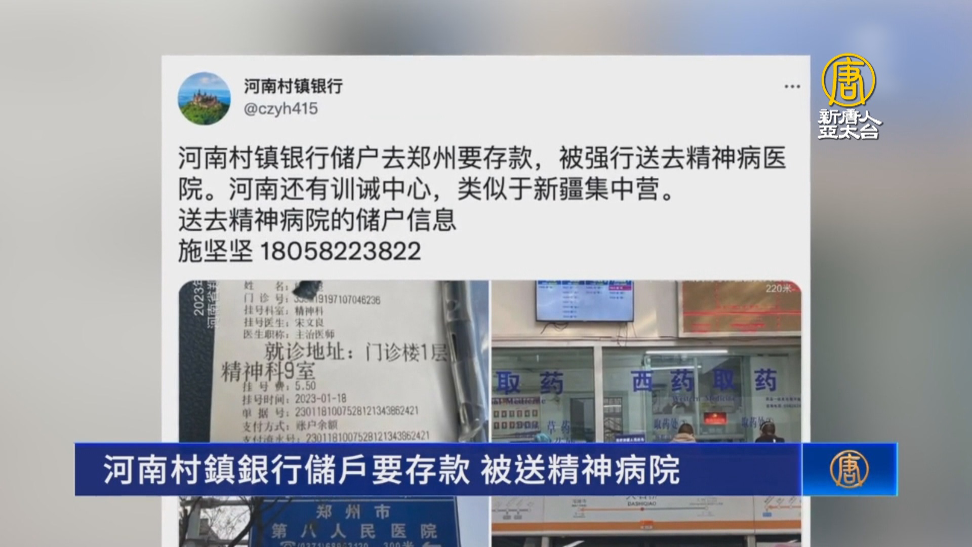 【新唐人亞太台 2023 年 01 月 19 日訊】河南村鎮銀行弊案去年4月爆發後,至今仍有1000多名大額儲戶未獲官方墊付。日前有儲戶去鄭州要存款,結果被強行送到精神病醫院。