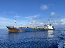 2021-08-06 00:29:00海巡署中部分署第四岸巡隊布袋商港安檢所守望人員,今(5)日下午3時許發現由澎湖返回布袋的山寶貳號貨輪,疑因風浪過大影響,導致船舶操控失靈,飄移至北防波堤,造成船體坐底擱淺。立即通報第五巡防區、交通部航港局及高雄港務分公司布袋管理處等相關單位前往前往救援,順利將船上7名台灣籍船員及2名印尼籍船員安全救離。