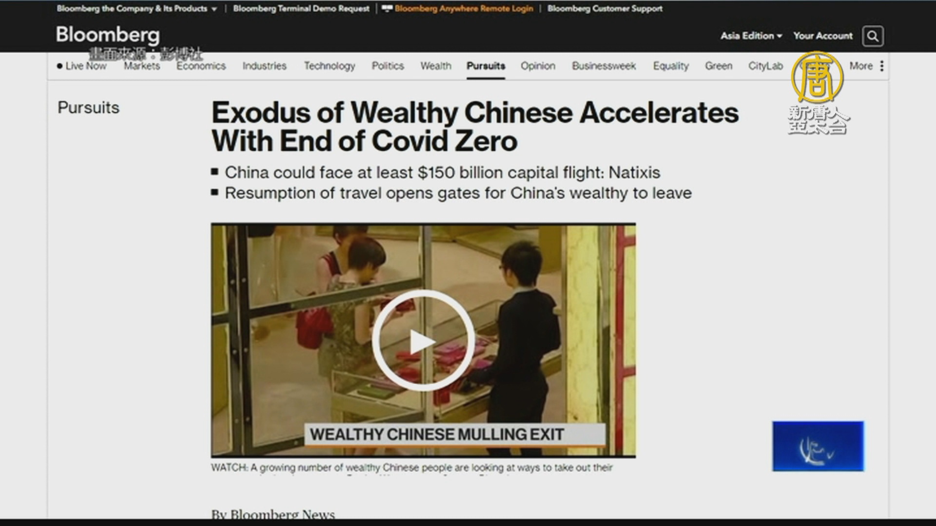 【新唐人亞太台 2023 年 01 月 26 日訊】中共當局放寬出入境管制,中國富人正在加速移民,彭博社報導,引述分析指出,在疫情大流行前,中國每年面臨約1500億美元的資本外逃,因為人們在過去三年無法出國旅行,但到2023年這一數字可能會更高,中國今年將面臨大量資金外流,這可能會給人民幣帶來壓力。