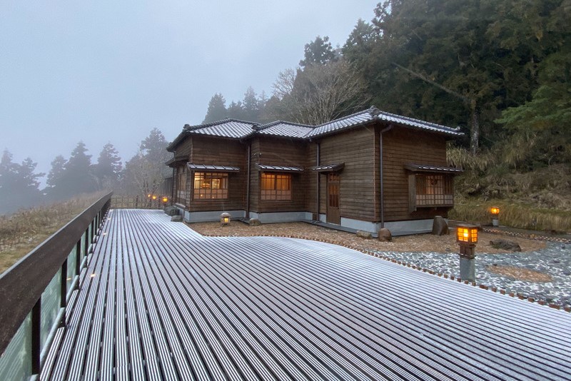 林務局羅東林區管理處指出,27日午後至傍晚,太平山國家森林遊樂區氣溫已下探攝氏零下4度,並陸續開始有冰霰及霧淞出現,園區山頭與日式建築附近地面再現銀色世界。(圖/林務局羅東林管處提供)